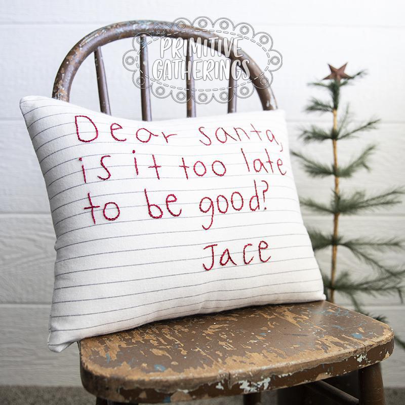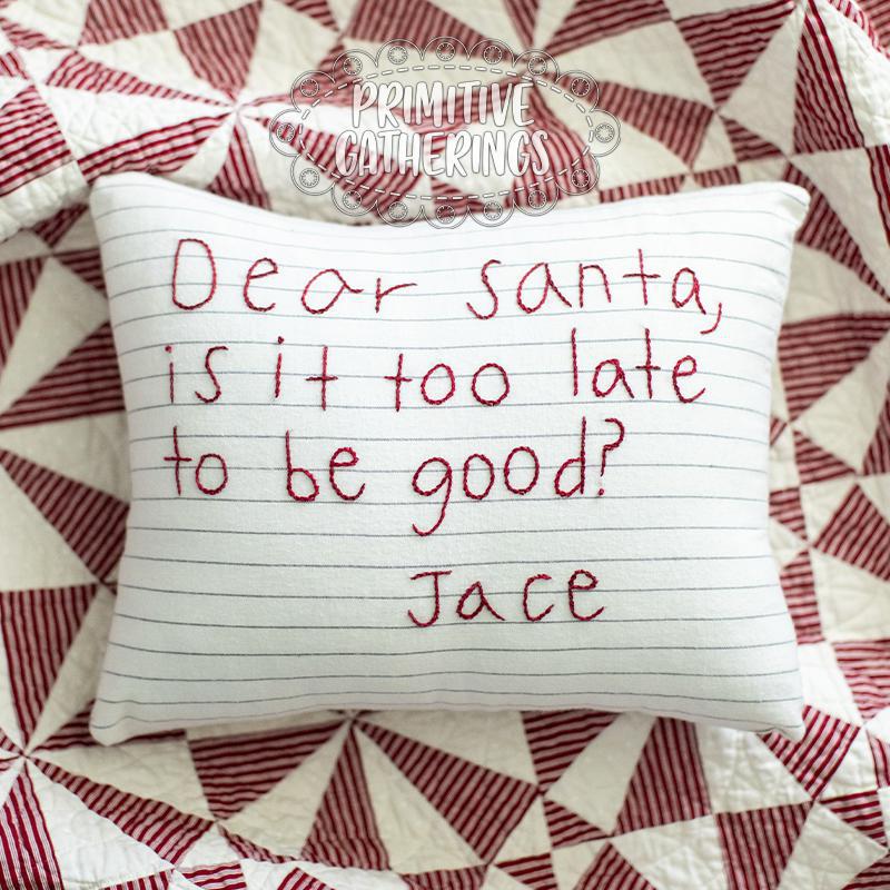 Lisa's grandson Jace has his first published project!! He had the idea for this cute pillow, and of course we had to add it to the "Dear Santa" book! This pillow will finish 20" x 20". The kit is simply a half yard of the homespun material Jace picked out for his sample. The pattern can be found in our "Dear Santa" book, and it was stitched using 1 ball of #5-O775.
