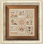 Model stitched on 30ct Portobello linen from Access Commodities using Classic Colorworks floss (with DMC conversions: white, 3820, 732, 420, 301, 3828, 642, 938, 3364, 926, 977, 976, 950, 435, 356.) Stitch count is 63 x 63. Approx size is 4.25" x 4.25".