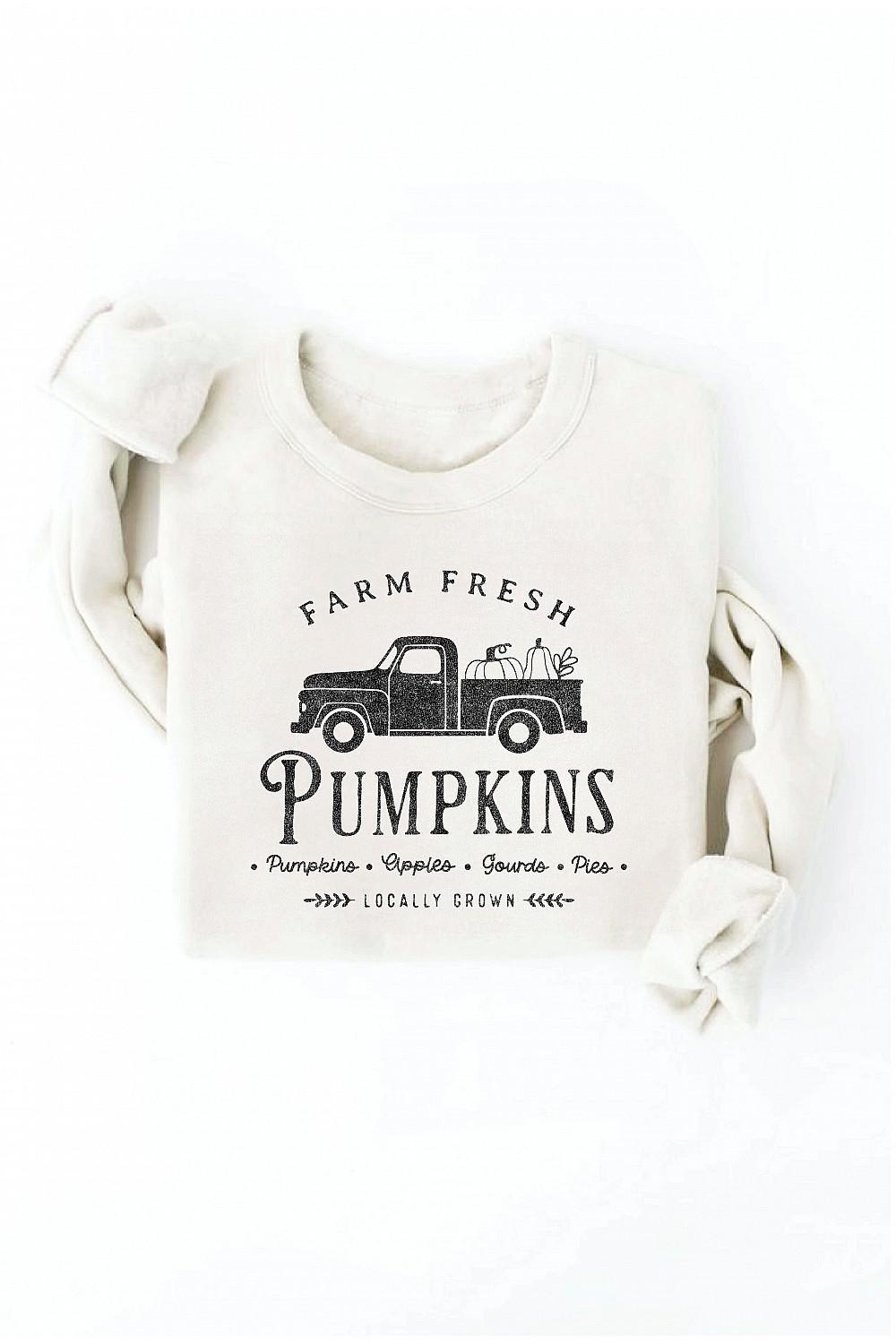 Product Description We now have some cozy fall apparel in stock! This sweatshirt features a farm truck full from the harvest!Available in Vintage White