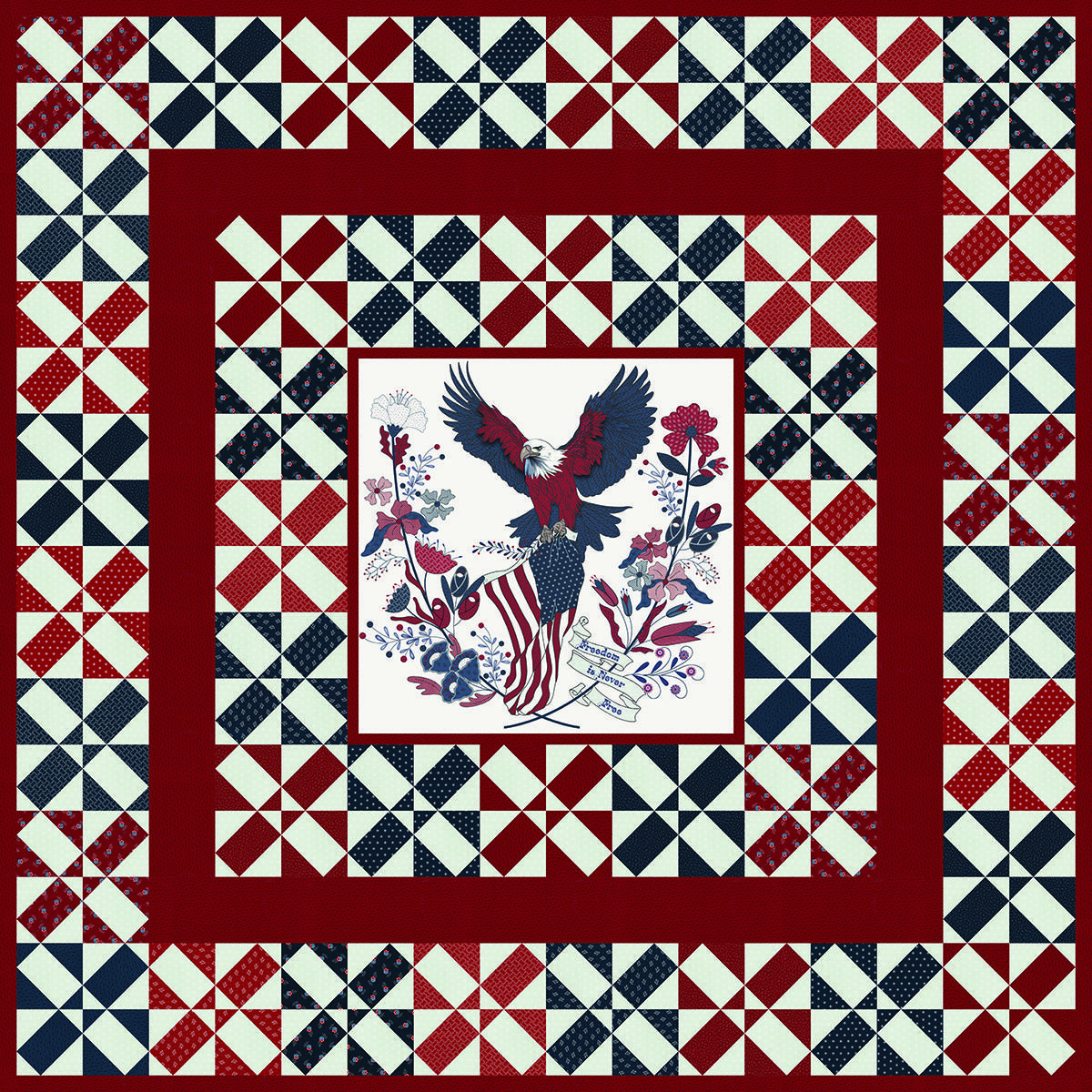 This quilt was made using our American Gatherings III fabric line by Moda, available in stores in December 2025.