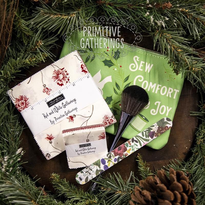 Treat yourself—or your favorite quilter—to this festive little bundle of goodies! Featuring precuts from Red & White Gatherings by Primitive Gatherings, this set is perfect for kicking off a new holiday project or adding to your fabric stash. The coordinating notions include a floral nail file and a soft makeup brush, making this a fun, gift-able mix of quilting inspiration and everyday pampering.
