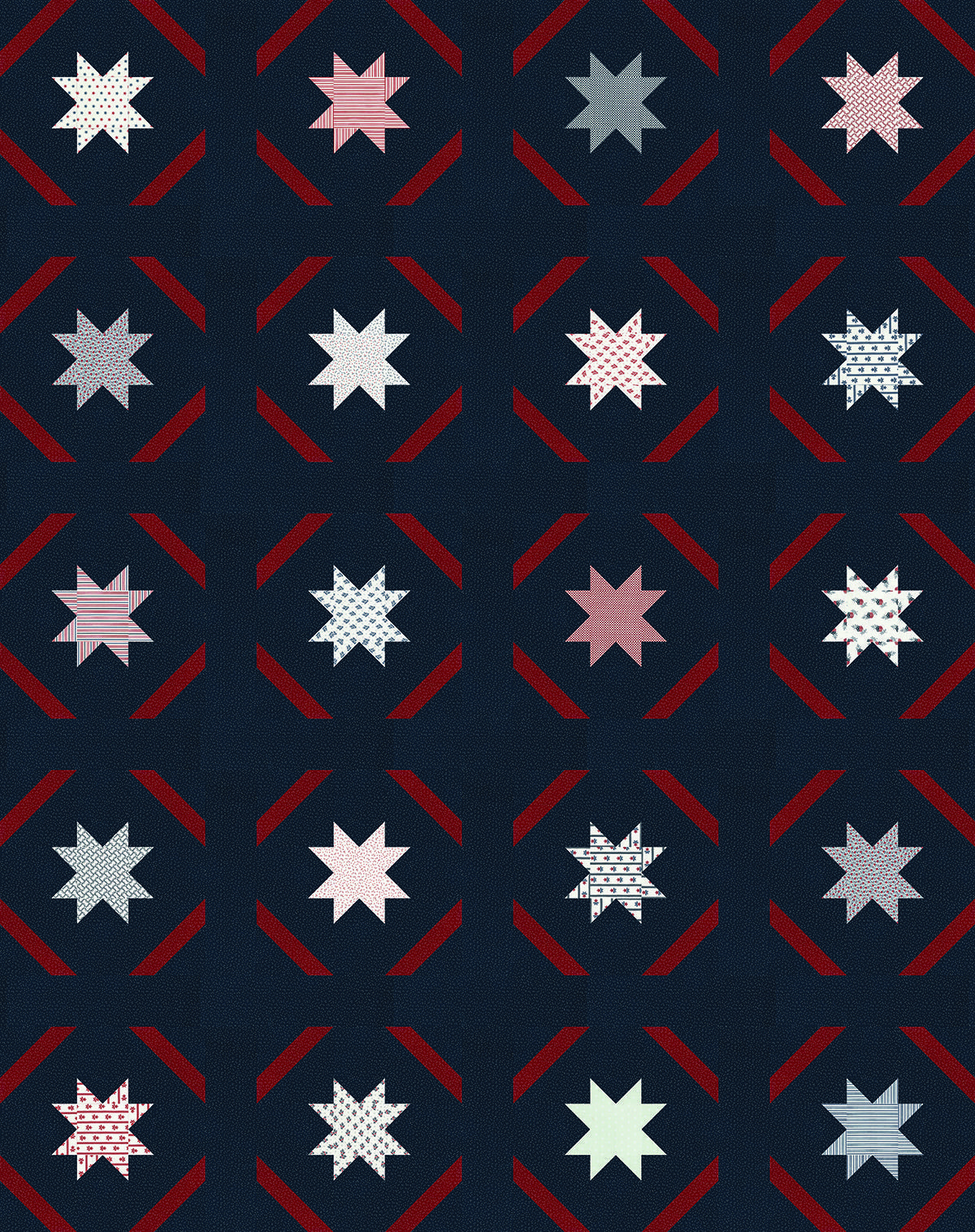 This quilt was made using our American Gatherings III fabric line by Moda, available in stores in December 2025.