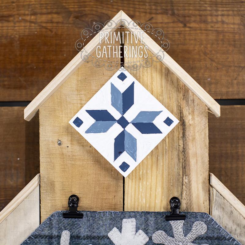 Each month you will receive a new layout for the wooden quilt block at the top of the barn, and the kit and pattern to make the wool applique project to go onto the Barn Clipboard.