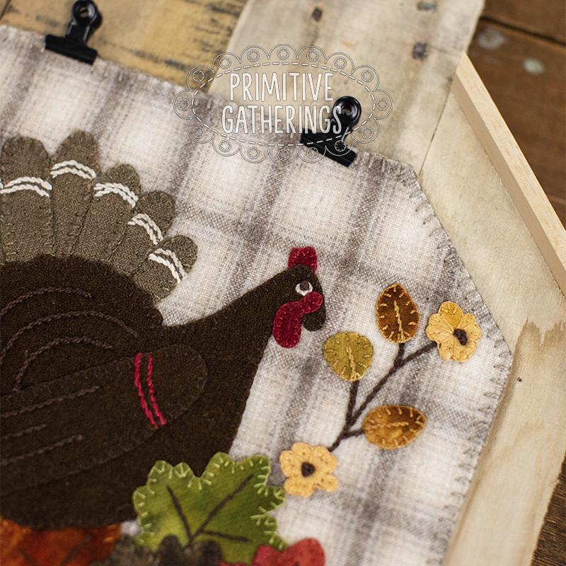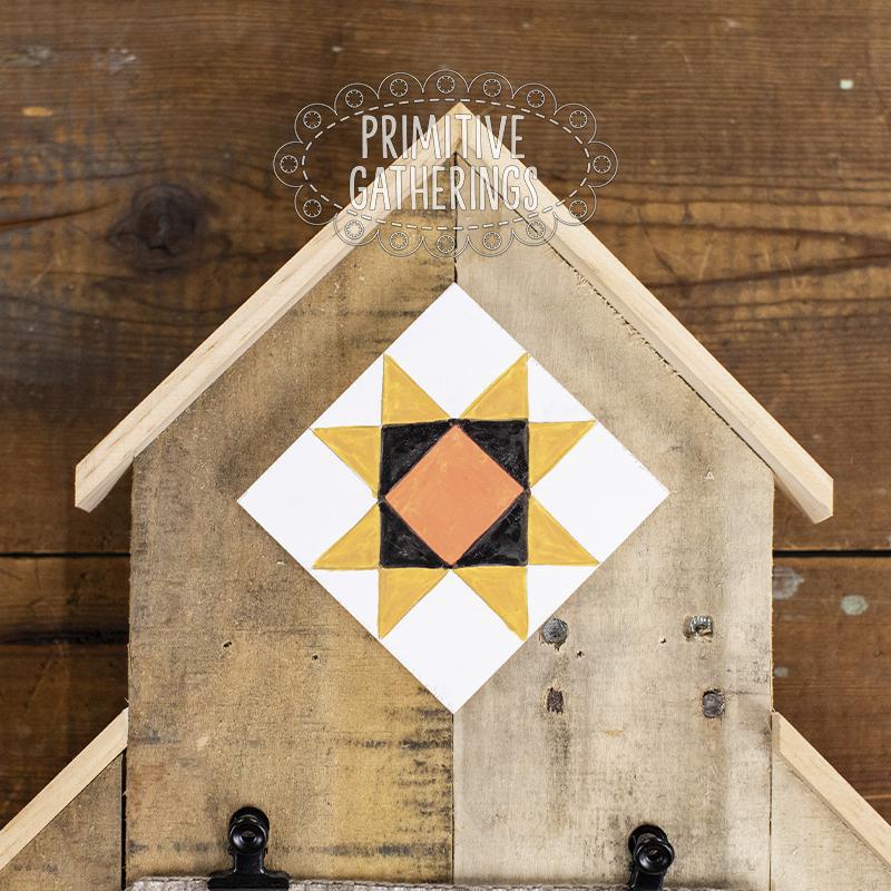 Each month you will receive a new layout for the wooden quilt block at the top of the barn, and the kit and pattern to make the wool applique project to go onto the Barn Clipboard.