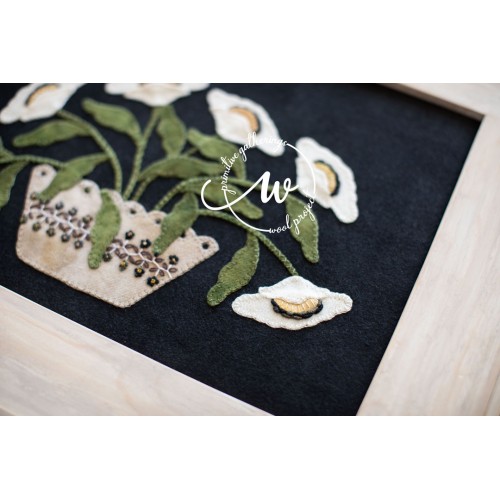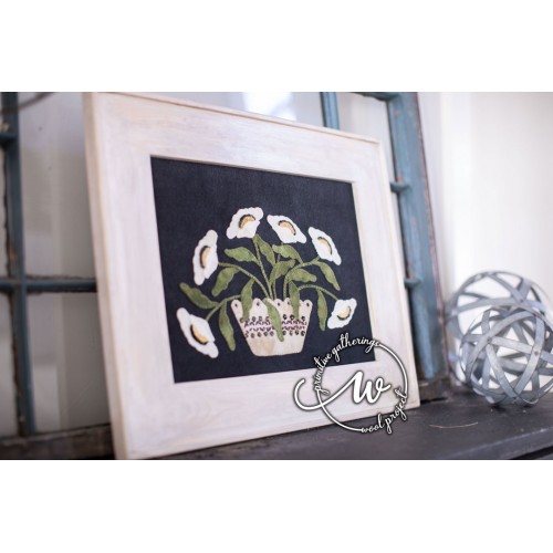 This framed piece is one of the projects featured in Lisa's how-to guide, Wool, Needle, and Thread 2-A Project Companion Book for Wool Stitchery. This is the follow up book to Wool, Needle, and Thread 1, where Lisa takes you step by step through each movement of the needle to create these projects-it's as though you are sitting in a class with her!