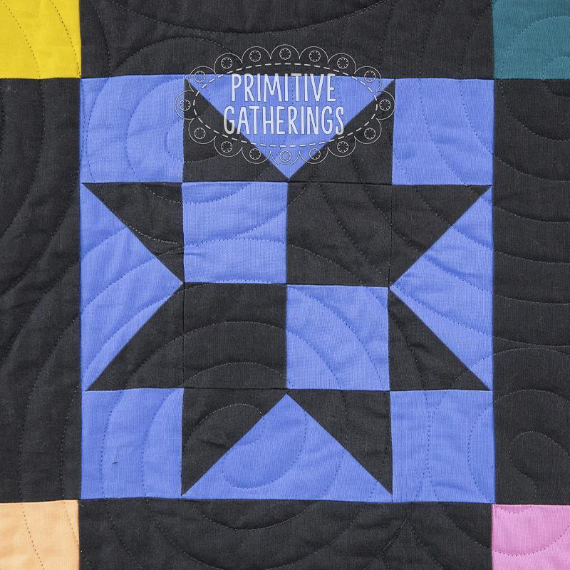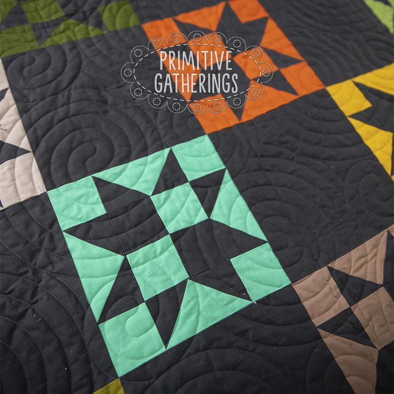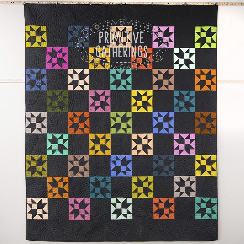 We want to welcome Elizabeth Hartman to the Moda designer family! We made this fun antique starry quilt using her first solid fabric line. With one layer cake we made 42 blocks, set them in a fabulous dark grey and the results are stunning!