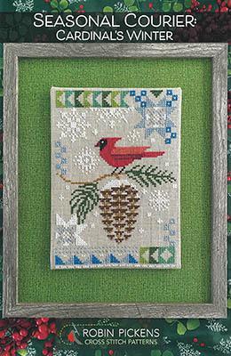 Product Description Cross stitch pattern from Robin Pickens featuring a cardinal in winter on a pine cone! Pattern is stitched on Prim 25 count Lugana by Lori Holt using DMC floss. Stitch count is 66 x 95.