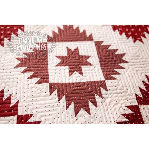 This quilt finishes 75" x 90", and is available in either a two colr version, or scrappy version, using several reds.