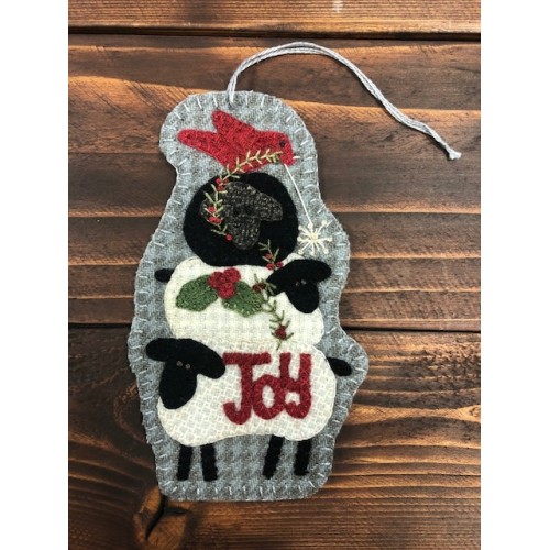 #stackedsheep #holiday #christmas #three #snowflake #cardinal #bird #joy #holly #woolapplique #ornament #pri423