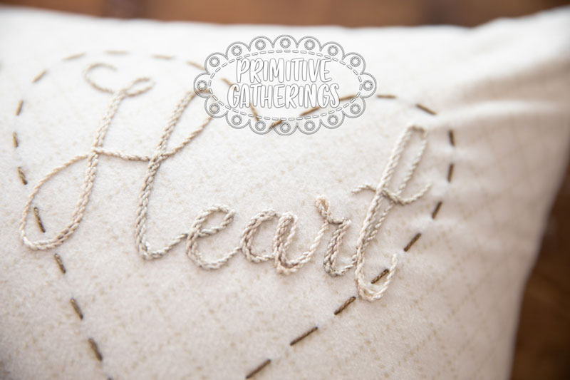 This sweet pillow is a design Lisa used in her tutorial on how to stitch words with thick and thin lines on a light background...please visit her Youtube channel to see all of her tips and tricks on how to stitching lettering. This pillow can be made for weddings, anniversaries or just to decorate your nest! Look for another tutorial on how to stitch on a dark background. We used a pillow form that was 13" x 23".